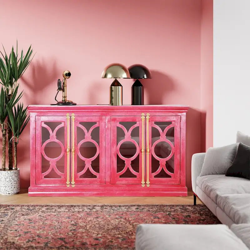4-Door Sideboard, Red & Mint Green, Glass Doors, 71"