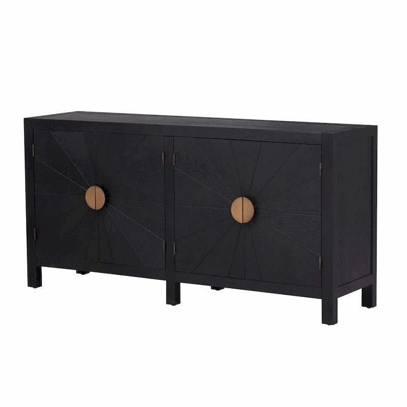 • Striking Radiating Line Design: The cabinet doors feature an intricate radiating line pattern, adding dynamic visual interest. This design element creates a sense of movement and energy, making the sideboard a standout piece in any room.