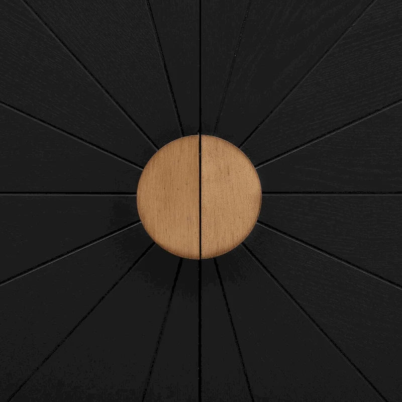 • Elegant Ash Veneer Finish: Crafted with high-quality ash veneer, this sideboard highlights the natural beauty of wood grain. The veneer enhances the radiating line pattern on the doors, providing a smooth and polished finish.