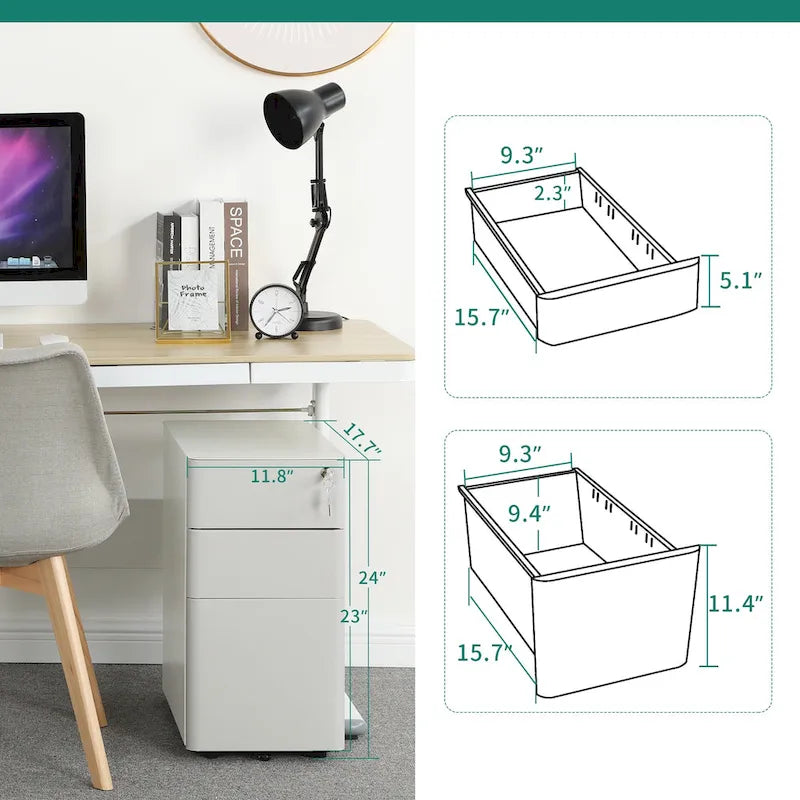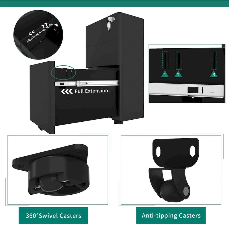 Modern 3-Drawer Mobile Steel File Cabinet