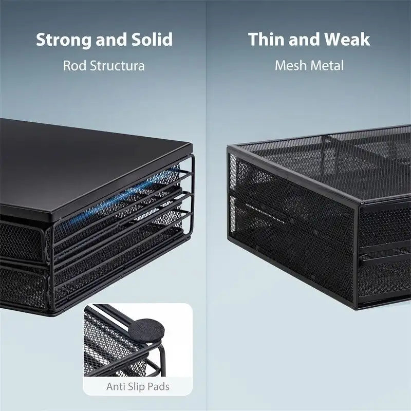 - The monitor stand riser has two removable drawers, one large drawer can easily fit file folders, 14 laptop, A4 paper or note pads, and one drawer has dividers for smaller office items. A monitor stand also can be a useful means of storage to help declutter your desk!