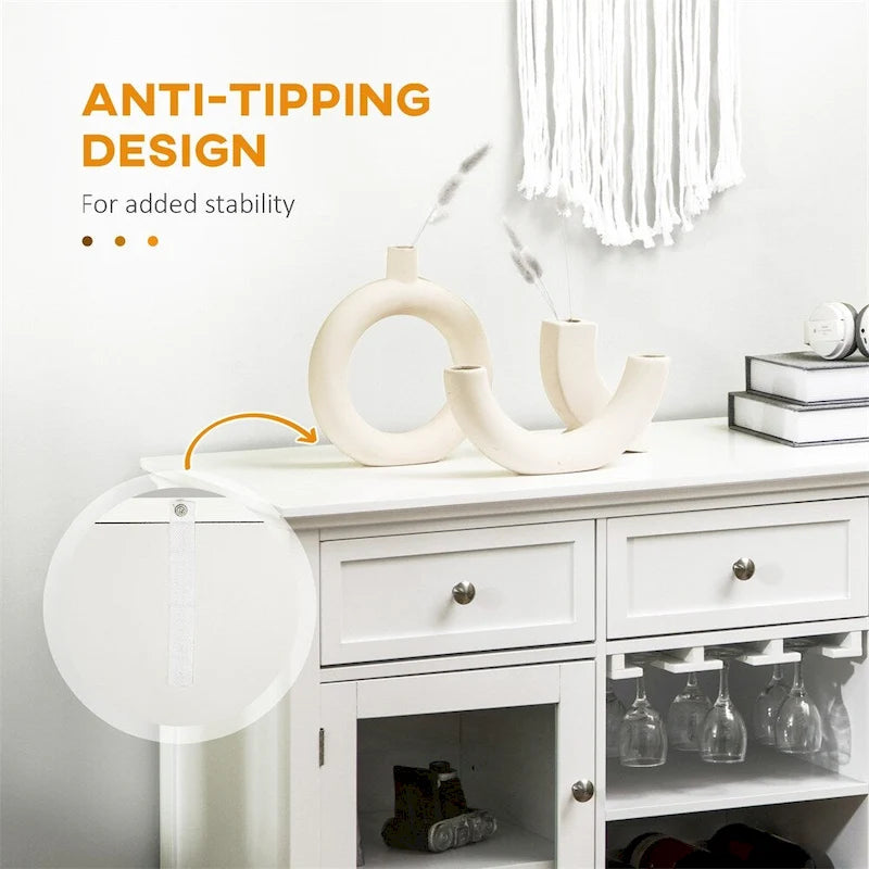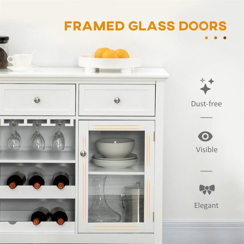 Coffee Bar Cabinet w/Drawers,Wine Rack,Stemware Racks,Buffet Cabinet