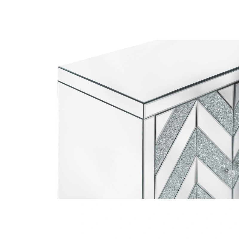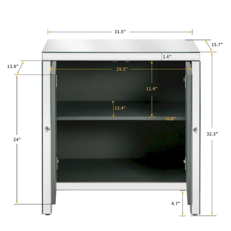 Storage Cabinet with Mirror Trim and Special Shape Design, Silver,for Living Room, Dining Room, Entryway, Kitchen.