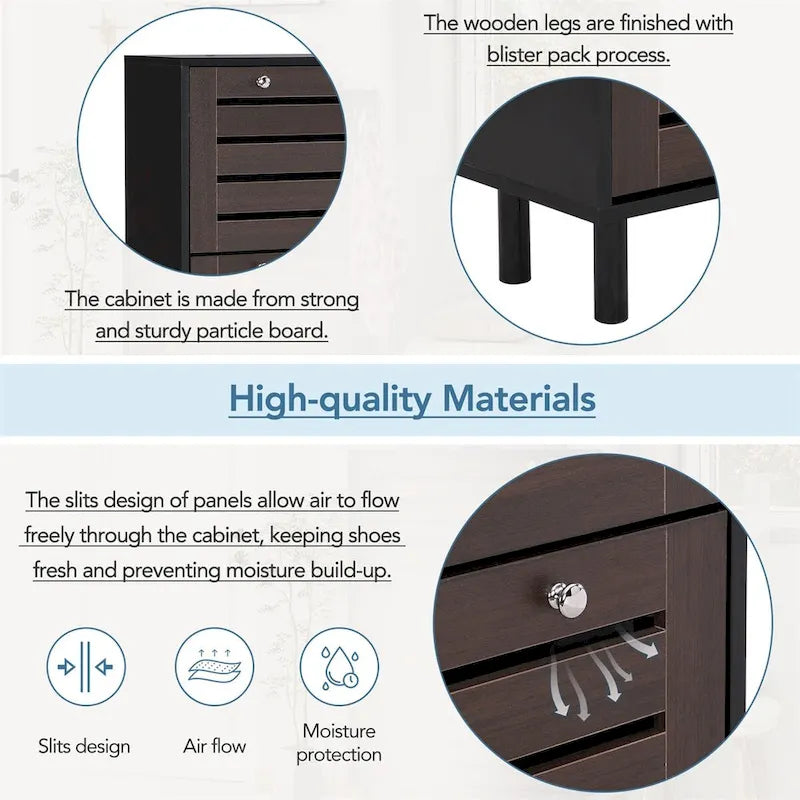 - [High-quality Materials] The cabinet is made from strong and sturdy particle board, while the wooden legs are finished with blister pack process, adding extra durability and longevity to it. The slits design of panels allow air to flow freely through the cabinet, keeping shoes fresh and preventing moisture build-up.