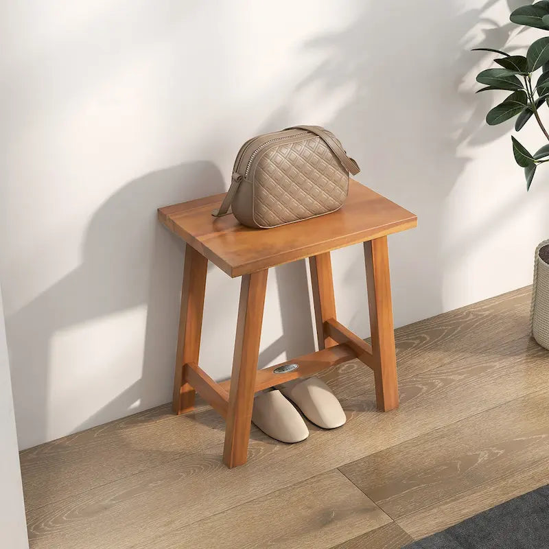 • Enjoy a health spa or home shower with our versatile teak shower bench.With a high-quality teak wood frame and water based finish, it is great for bathrooms or shower rooms. The smooth and splinter-free seat enables you to comfortably and safely sit or place your legs. Meanwhile, you can store your bath items on the top space for easy access. The stool with solid legs bears a weight of 350 lbs. In addition to being used as a shower bench, the bench can also be used as a side table, a changing shoe bench, or a plant stand in the balcony, meeting your different needs.