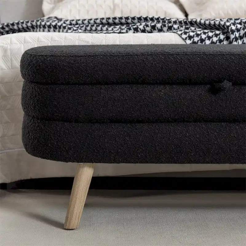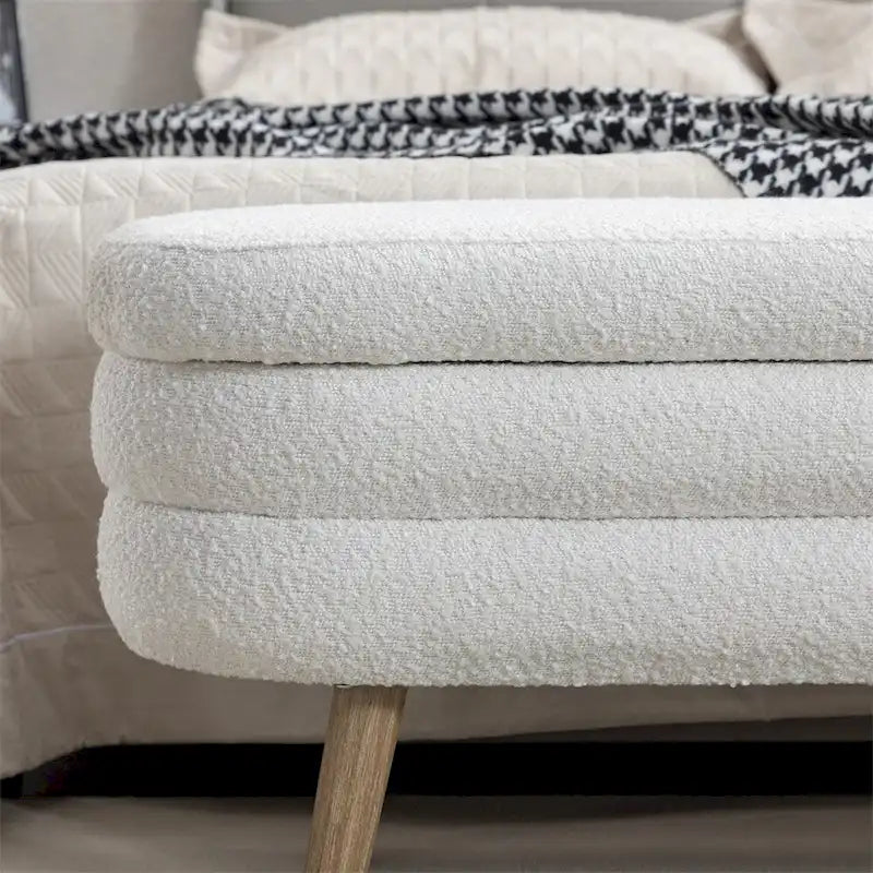 Boucle Fabric Storage Bench Bedroom Bench w/Wood Legs For Living Room