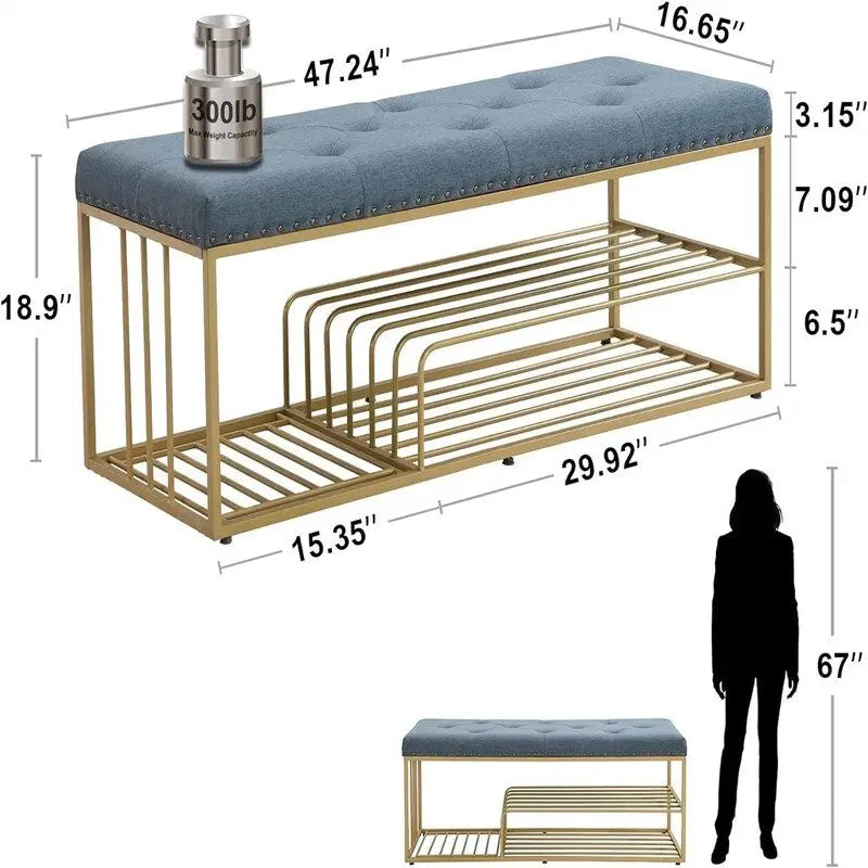 - LARGE STORAGE SPACE:This end of bed bench with 2 spacious storage compartments,the storage compartment has a 2 tier shoes rack can accommodate 6 8 pairs slippers,sneakers and high heel,the separate compartment on the other side can be used for 1 2 pairs boots. The size of the entryway bench with storage is 47.2W * 16.9D * 18.9H,which is larger than other storage benches.