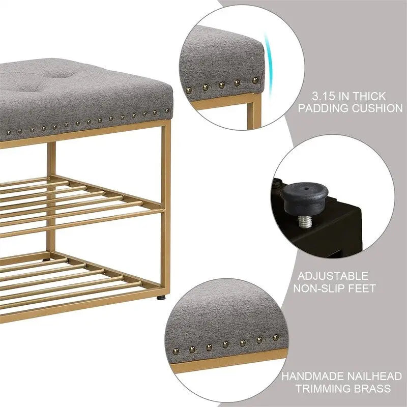 - STURDY AND STABLE:This window bench storage equipped with durable golden steel metal base and the maximum weight capacity is 300 pounds can accommodate two adults at the same time.The storage bench for bedroom with four adjustable anti skid feet to adjust the height and protect the floor from scratching.