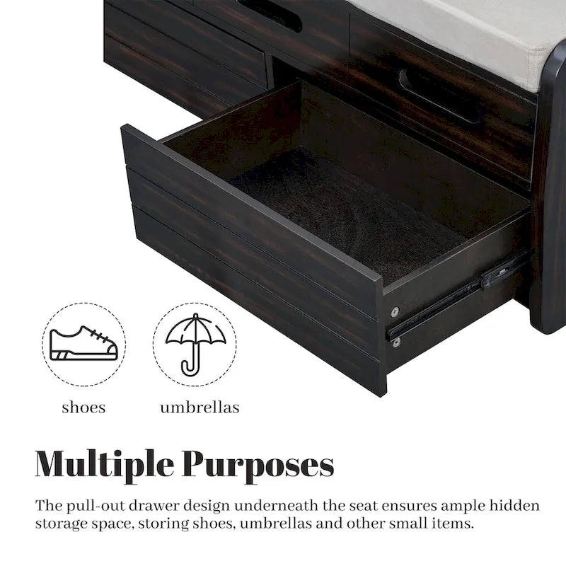 Multiple Purposes: The pull-out drawer design underneath the seat ensures ample hidden storage space, allowing you to easily store shoes, umbrellas and other small items, which can be hidden by closing the door to better keep the living room, corridor and entrance clean and tidy. You and your family can put on your shoes while sitting instead of squatting, which provides you with a thoughtful convenience.