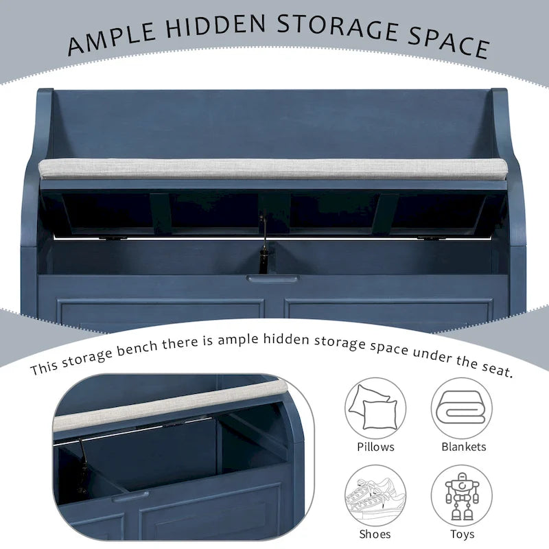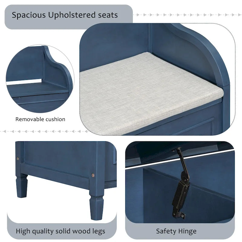 Rustic Style Solid wood Entryway Multifunctional Storage Bench with Safety Hinge