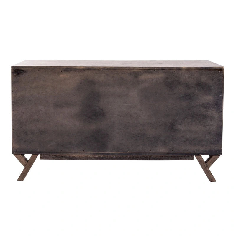 Enhance your home office with the Lennox credenza. Crafted by rubberwood solids with split heart white oak veneers, this piece features fully stained interior drawers consisting of three storage drawers and two file drawers, heavy wire brushing, storage drawers, lateral files, anchored by an angled leg base, and is accented by antique pewter bar pull hardware.