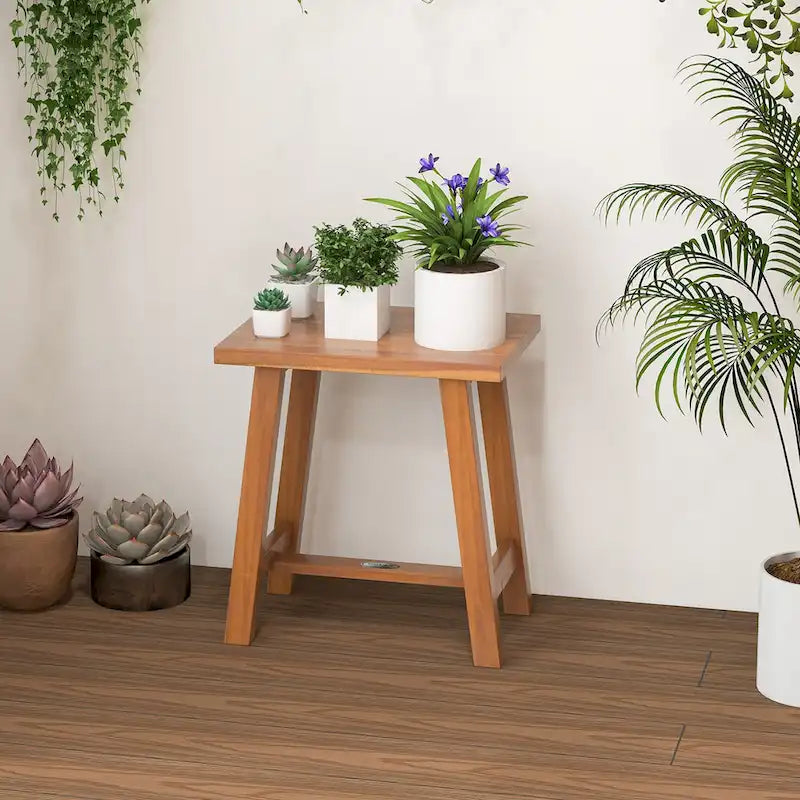 Enjoy a health spa or home shower with our versatile teak shower bench.With a high-quality teak wood frame and water based finish, it is great for bathrooms or shower rooms. The smooth and splinter-free seat enables you to comfortably and safely sit or place your legs. Meanwhile, you can store your bath items on the top space for easy access. The stool with solid legs bears a weight of 350 lbs. In addition to being used as a shower bench, the bench can also be used as a side table, a changing shoe bench, or a plant stand in the balcony, meeting your different needs.